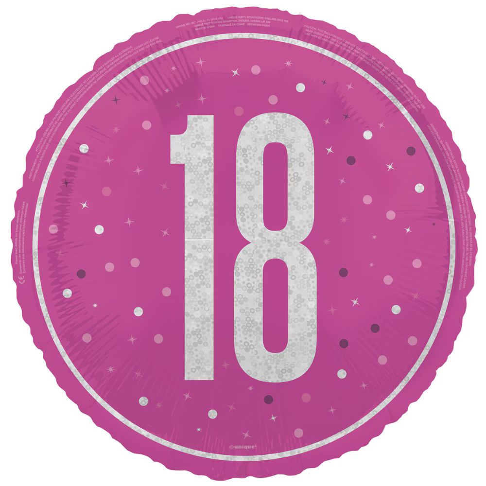Balloon Foil 45cm Age 18 Prismatic Pink Ea