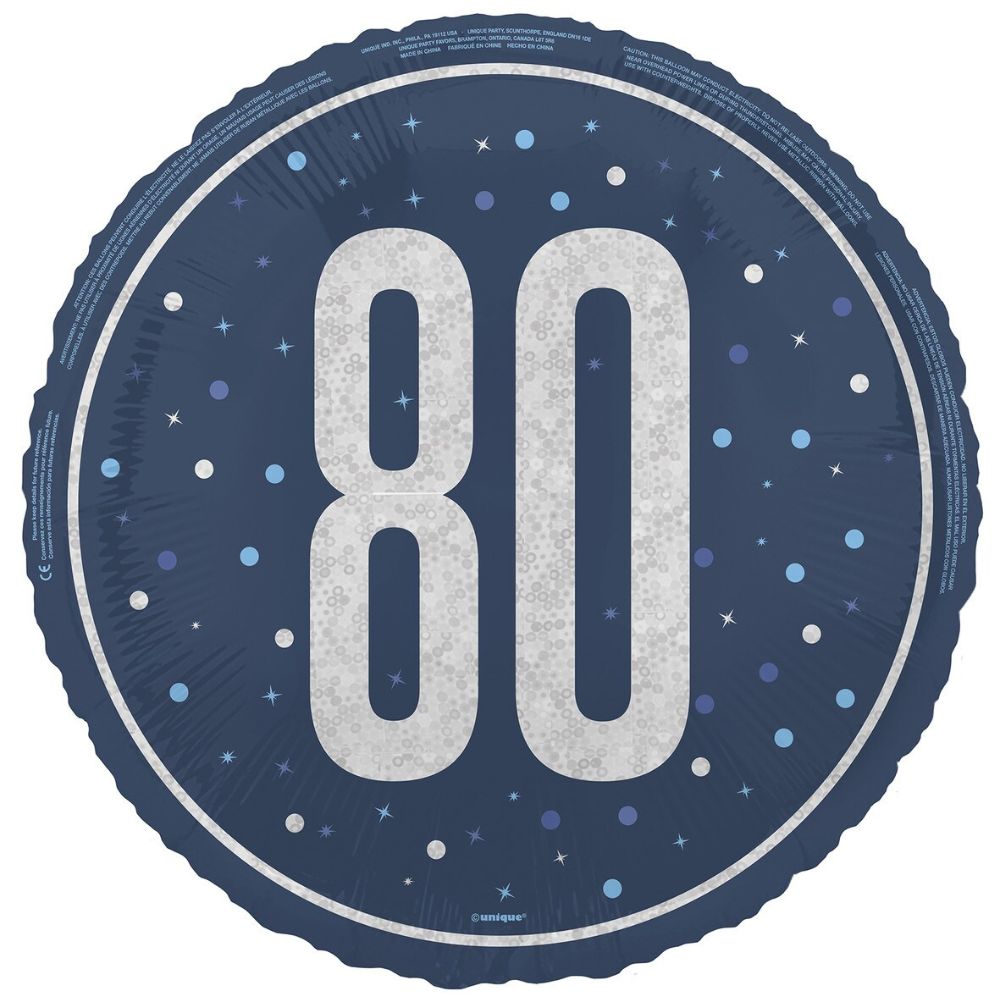 Balloon Foil 45cm Age 80 Prismatic Blue Ea