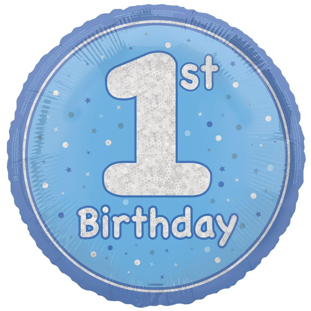 Balloon Foil 45cm Happy 1st Birthday Blue Ea
