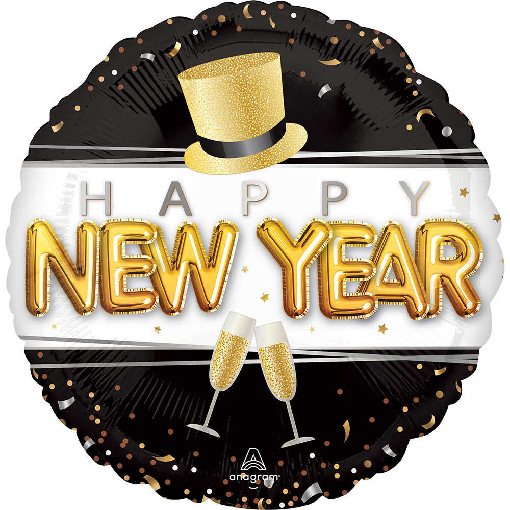 Balloon Foil 45cm Happy New Year Pop Clink Ea