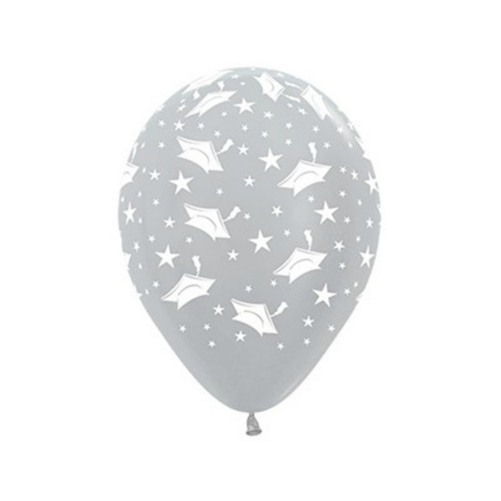 Balloon Latex 28cm Graduation Cap Silver Pk 12 LIMITED STOCK