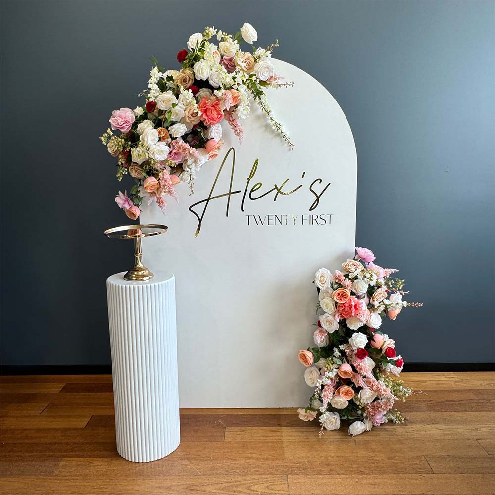 Bloom Pak8 Wooden Arch & Personalisation, Plinth, Cake Stand & Floral Piece HIRE