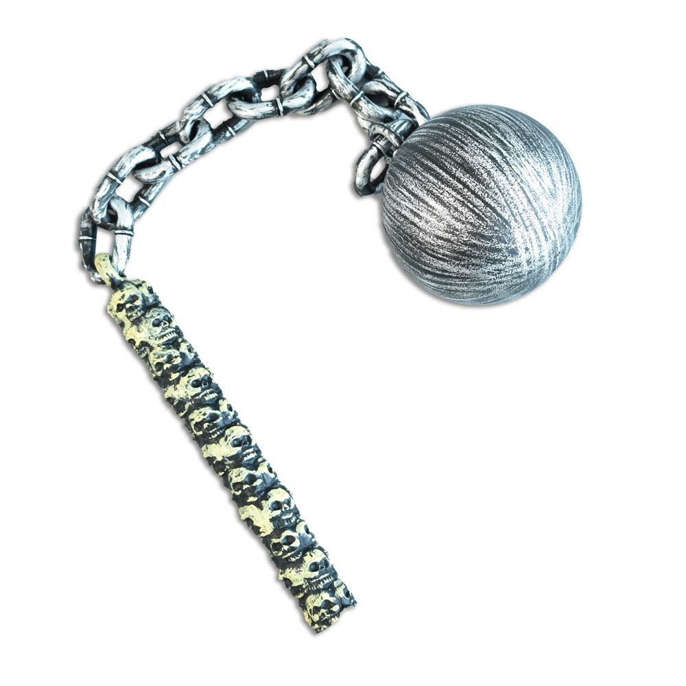 Flail with Iron Ball and Skull Handle 75cm Ea