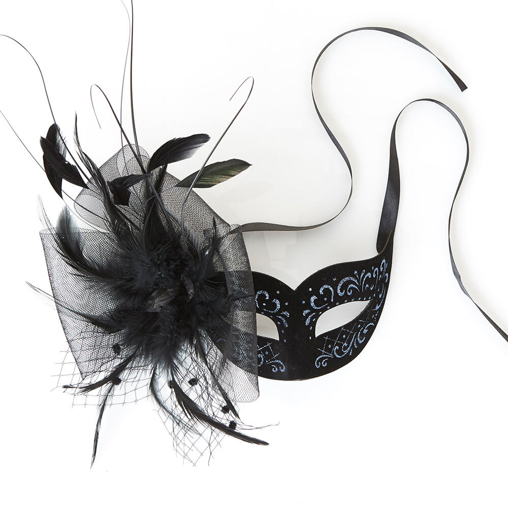 Mask Suede Black and Grey with Feathers Ea LIMITED STOCK