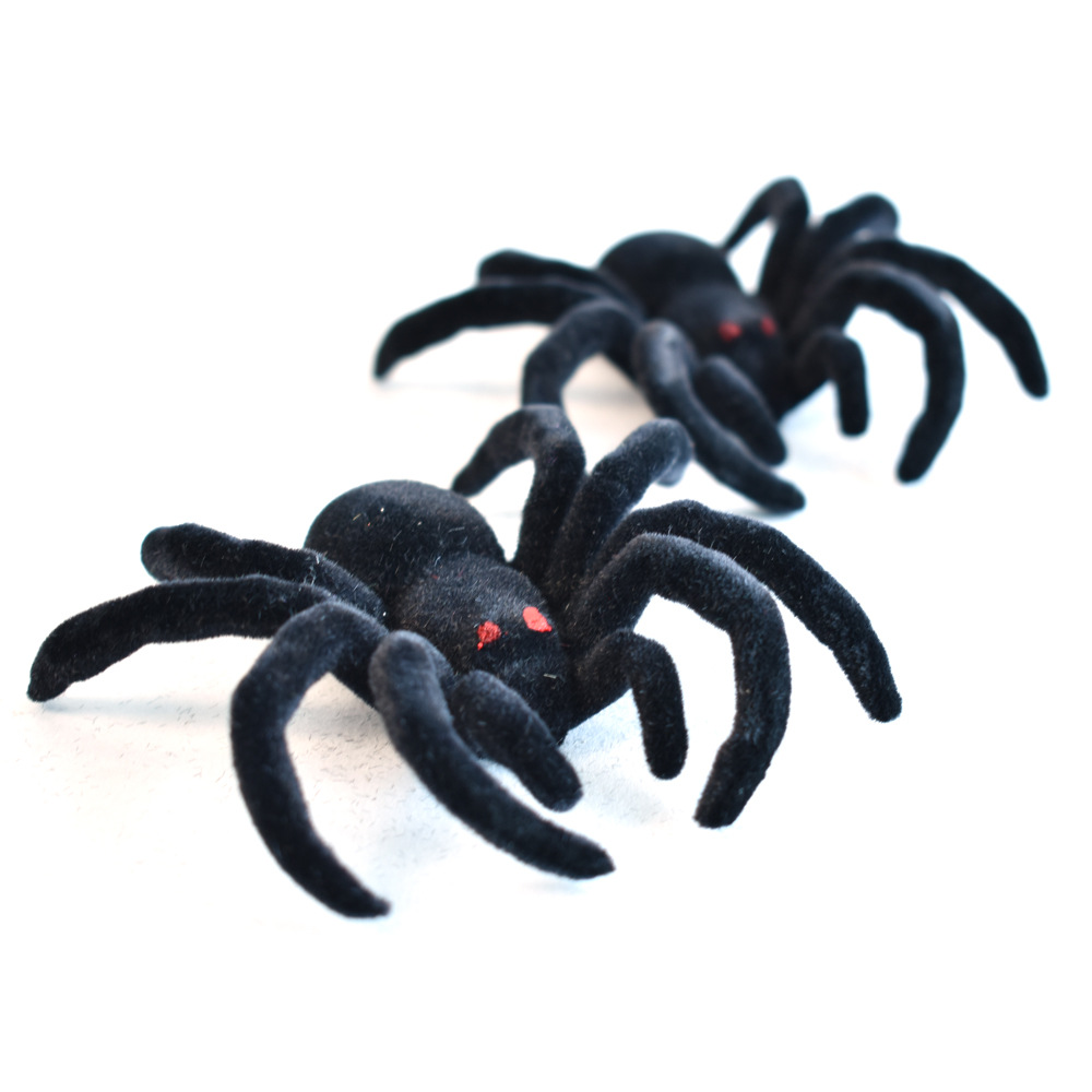 Spider Flocked Black 10cm Pk 2